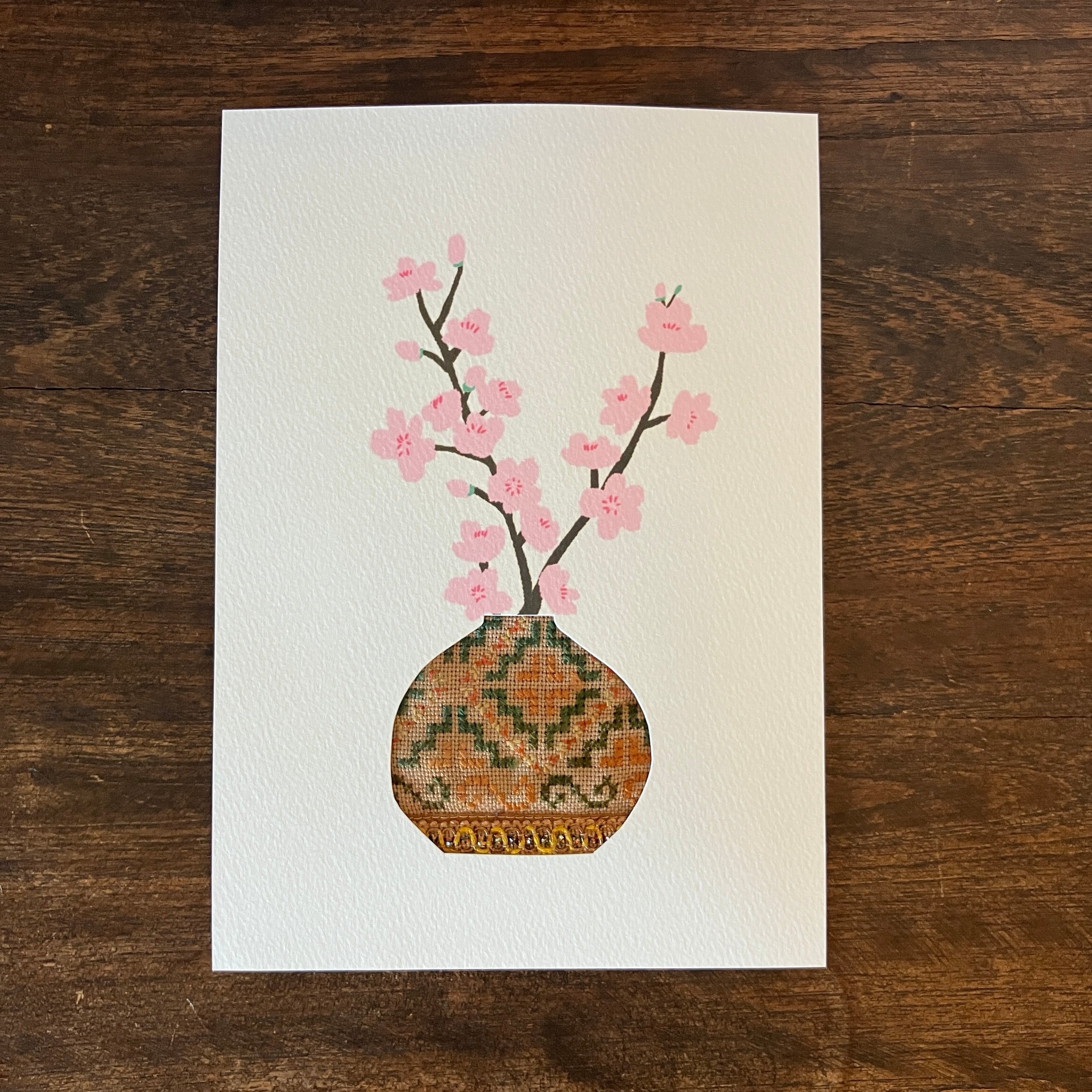 小さな布とイラストのポストカード 桜 大